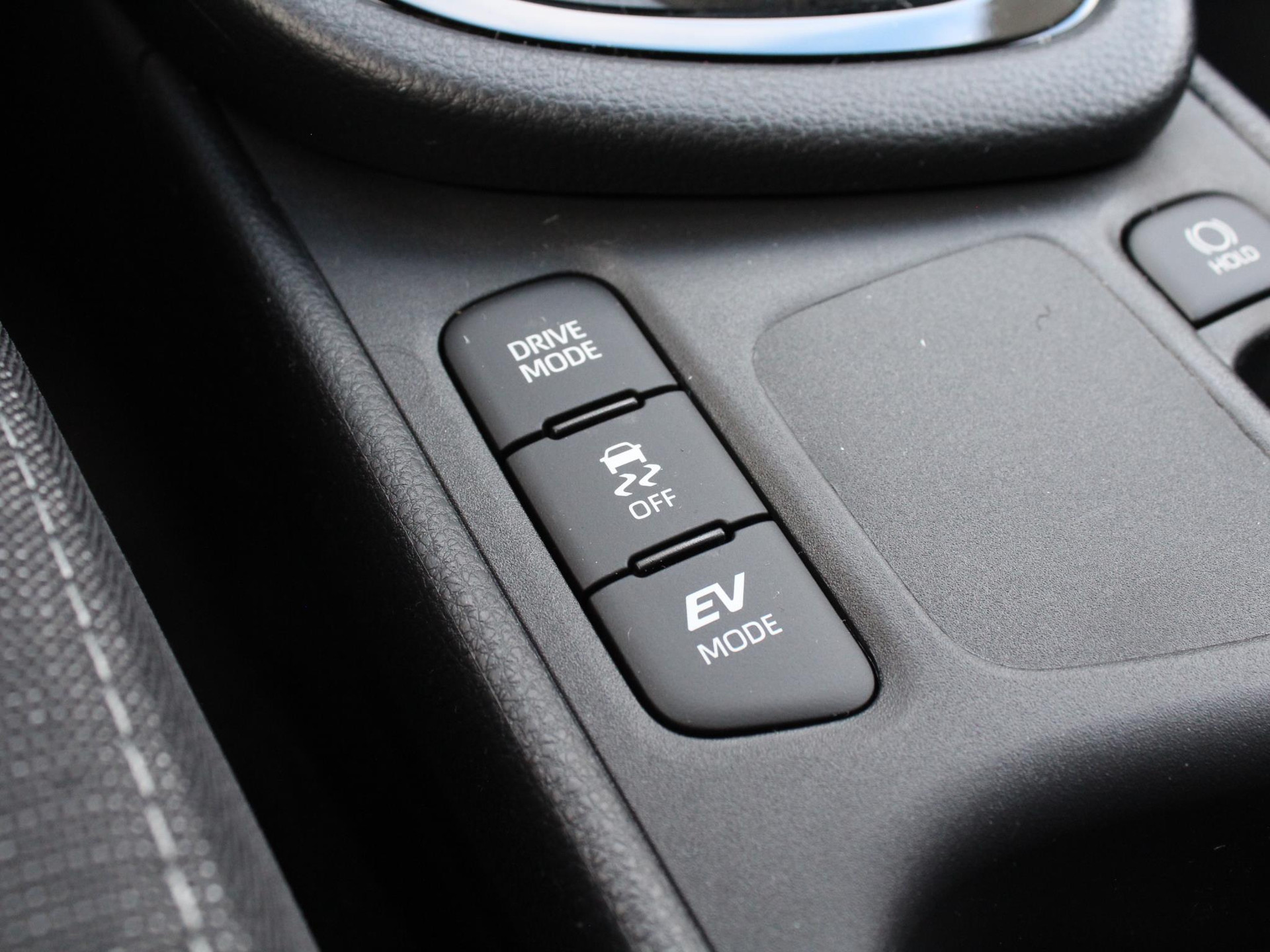 InterieurZwart stof met grijze stiksels |
