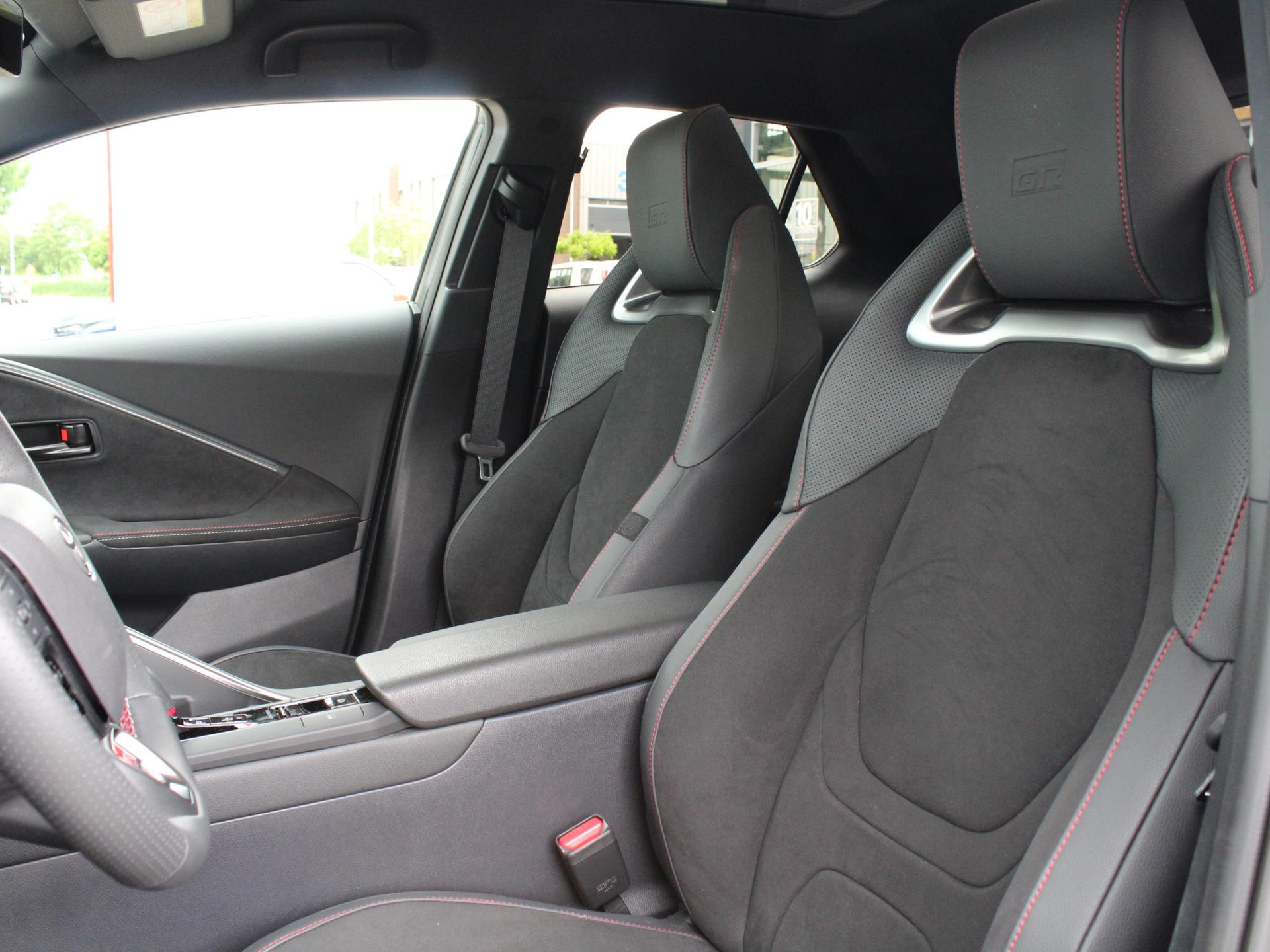 InterieurZwart lederen stoelbekleding met suede a |