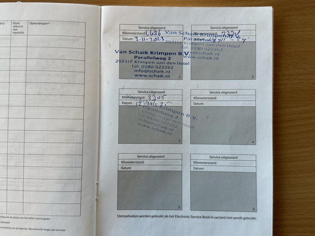 - Onderhoudsboekje (fysiek)